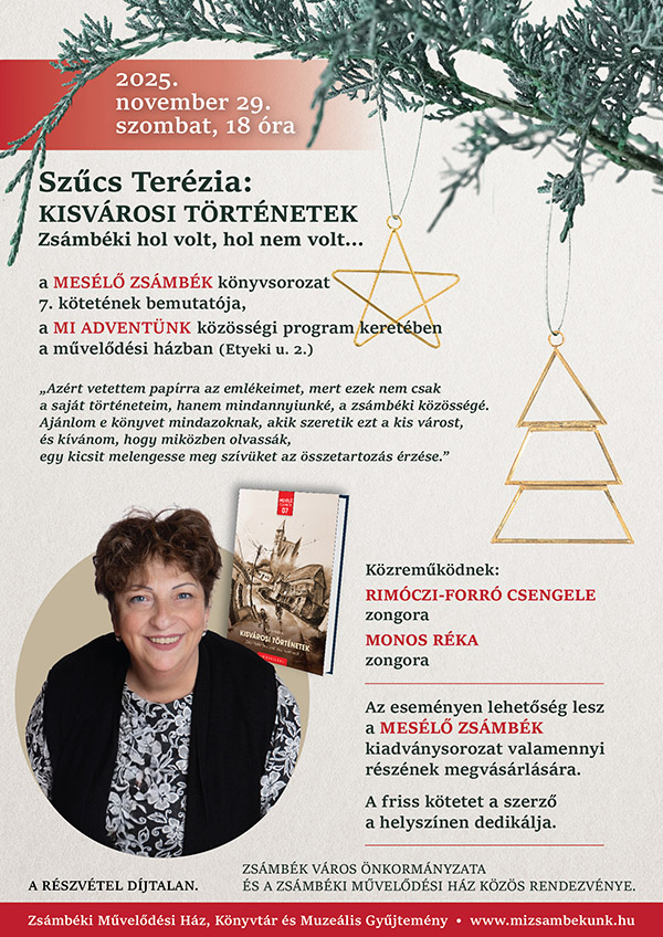 Első volt a sorban a Zsámbék központi tere egy család emlékezetében című visszaemlékezés gyűjtemény Mészáros Árpád és Scharle Krisztina tollából. A könyvbemutatót kísérő érdeklődés nyomán és mivel sokan jelezték, hogy a jól időzített megjelenés remek karácsonyi ajándék ötletet adott, a sorozat további részeinek bemutatóját már tudatosan terveztük minden év első adventi hétvégéjére. Tafferner Tamás az Immaculata szoborról írt tanulmánya, a Mesélő Zsámbék - a velünk élő történelem című antológia, Mazug László Mesélő zsámbéki képeslapok című könyve, dr. Lénárd Tibor Kölesd újranépesedése és a zsámbéki reformátusok betelepülése című monográfiája és Mazug László Szőlő és bor Zsámbékon, 800 év szőlőtörténelem című munkája után az idén már a sorozat hetedik része várható, amit 2025. november 28-án délután, a Mi Adventünk közösségi ünnep keretében szervezett könyvbemutató alkalmával vehetnek először kézbe az olvasók a művelődési házban.