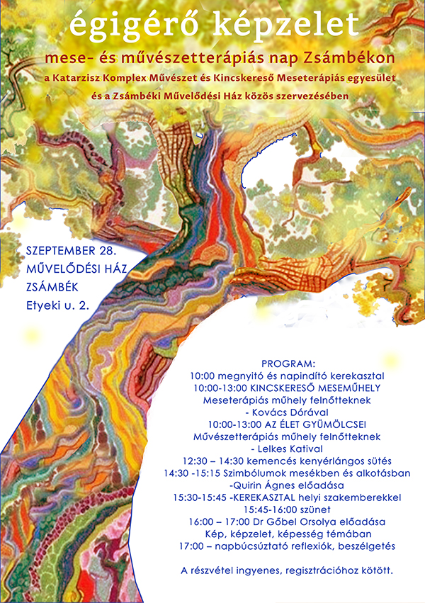 Hagyományteremtő céllal szervezzük meg idén első alkalommal „ÉGIGÉRŐ KÉPZELET" címmel mese és művészetterápiás napunkat Zsámbékon, a Katarzisz Komplex Művészet és Kincskereső Meseterápiás Egyesület és a Zsámbéki Művelődési Ház együttműködésében.