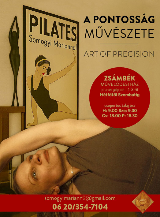 Somogyi Mariann Pilates oktató vezetésével újdonságként gépes (reformer, gerinckorrigáló) Pilates és kiseszközös talaj Pilates órák elérhetőek a Zsámbéki Művelődési Házban.