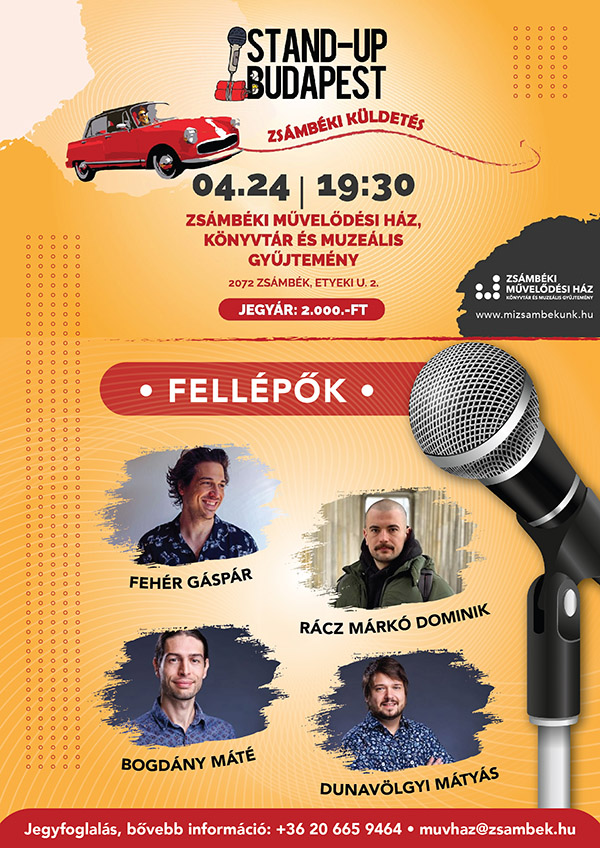 STAND-UP BUDAPEST est a művelődési házban. NINCS MEGÁLLÁS, FOLYTATÓDNAK A STAND-UP BUDAPEST ESTEK ZSÁMBÉKON!